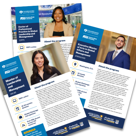 Social media and display ads showcasing Thunderbird’s portfolio of global business degrees.
